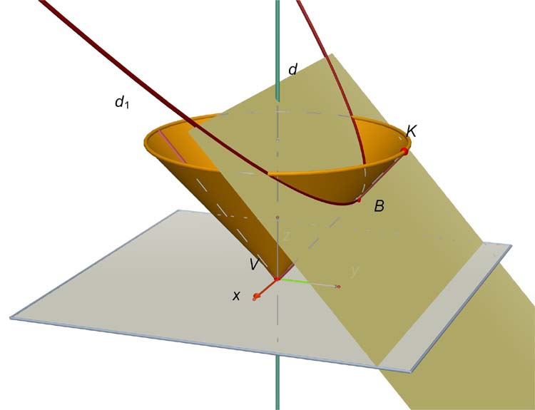 La parabole, courbe d'intersection d'un cône et d'un plan parallèle à une génératrice Cliquer sur l'image pour ouvrir la page dans laquelle on peut manipuler la figure dynamique en 3D Télécharger la figure ci-dessus Fermer la fenêtre